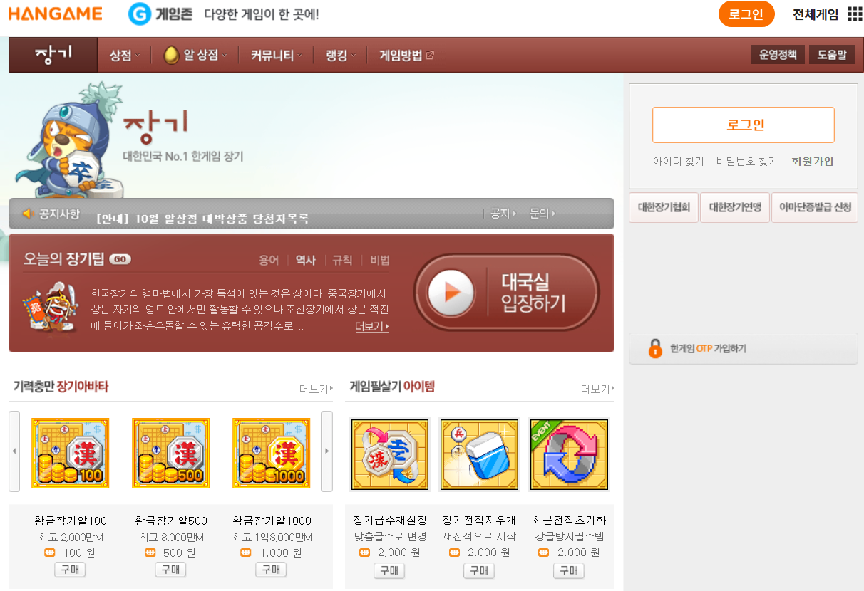 이용 방법: 한게임 공식 홈페이지에서 장기 게임을 검색 -> 다운로드 -> 설치 -> 회원가입 및 로그인